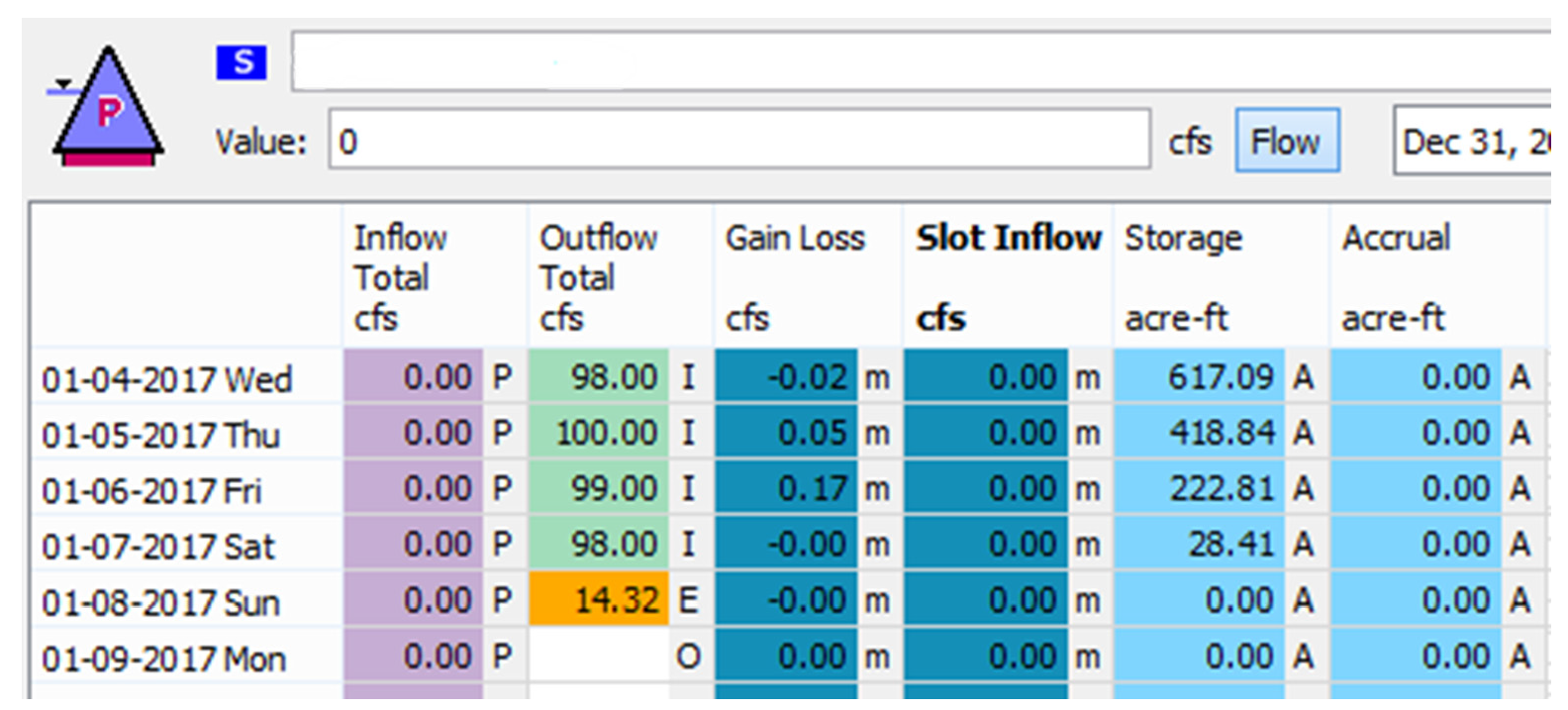The new Empty Storage, E flag, set on an Outflow supply slot, will compute the value necessary to empty the Storage account of all its water (i.e. Storage will be zero). The new flag may be cleared interactively with the Clear Values operation, or overridden by setting its value with a rule.