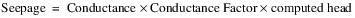 On the Reach and Distribution Canal, a new Conductance Factor series slot with periodic input was added to the Head Based Seepage method. If the slot has a valid value, it is included in the seepage calculation as follows: