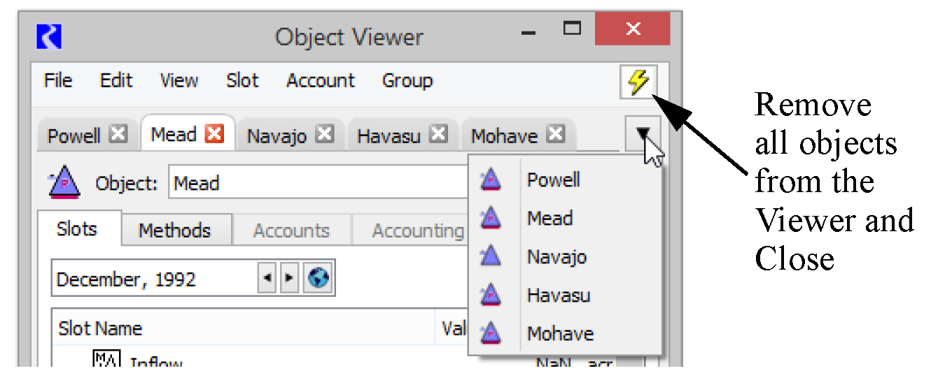 Within the Object Viewer, a new lightning bolt button removes all objects from the viewer and closes the dialog.
