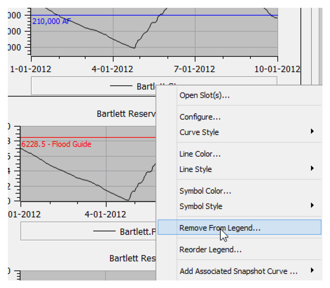 • Both curves and marker legend items can be removed from the legend. Configuration controls are available in the individual configuration dialogs, the Configure Multiple Plots and Curves and from the right-click context menu.