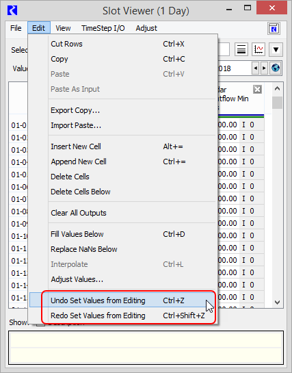 RiverWare now supports Undo and Redo operations for slot data edits, allowing you to easily reverse and reapply these types of edits. Initially, this functionality is provided for the following dialogs: