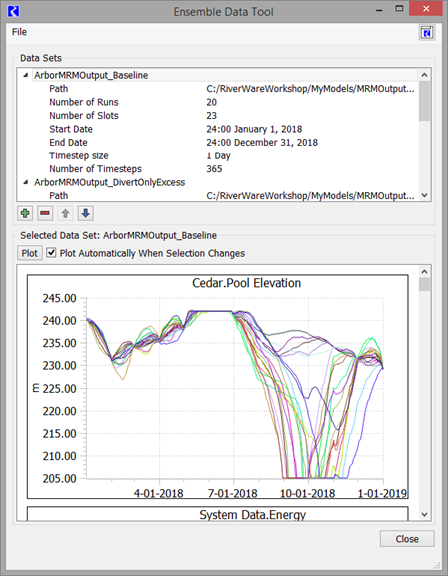 The initial version of the Ensemble Data Tool supports the management of ensemble data sets as well as limited visualization of those data using spaghetti or trace plots.