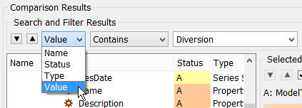 The search and filter functionality was enhanced to search or filter for property Values in addition to Name, Type, and Status. This allows you to search or filter based on strings in the raw data compared.
