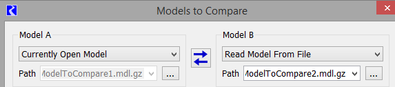 In the comparison tools, model and RPL set selections can now be swapped from A to B and vice versa. A screenshot with the new double arrow button is shown in