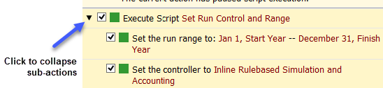 The Script Dashboard displays the subscript actions that an Execute Script will execute. A new arrow button has been added to collapse the sub-actions on the Script Dashboard. Also, there are Expand All and Collapse All items in the right-click context menu.