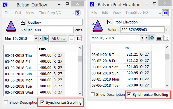 Figure 1.13, as you scroll either dialog through time, the other dialog’s time range also scrolls. The synchronize control is also shown in