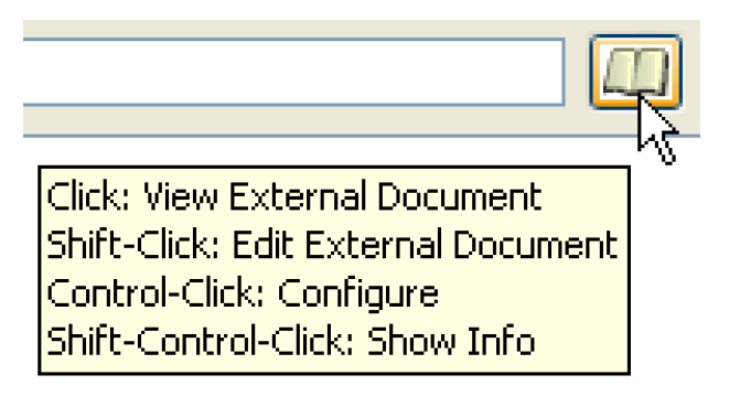 Hovering over the External Documentation icon provides tooltips on the use of this button, as follows: