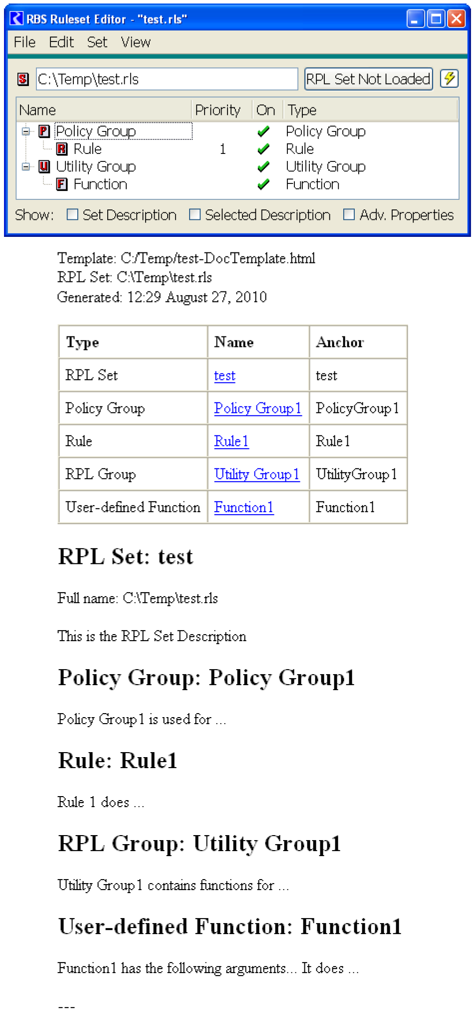 The External Documentation feature provides a utility to generate a template of the RPL objects in the set. This can be used as a starting point in which the user can fill in the missing pieces. It allows someone not too familiar with HTML to quickly generate a working document and all the associated anchors and formatting.