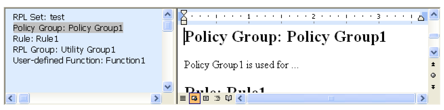 The HTML document also contains a table of contents that lists the type of RPL object, the name of that object (and a link to the referenced section) and the anchor that it uses. Shown in the body of the file is the RPL object name and any description (i.e. in the View, then Show Description in RPL editor) that existed in the RPL object at the time the template was created. Once the template is created, it can be viewed/edited using the view/edit button. The user can then fill in pieces as necessary and save the resulting file. Then there should be no need to re-generate this template again.