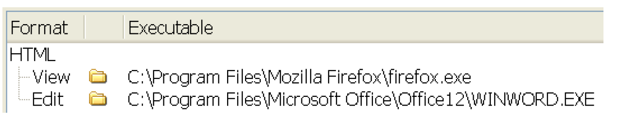 1. Define the file associations. We will use FireFox to view the document and MS Word to edit the document.