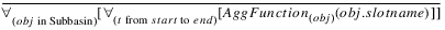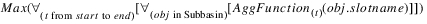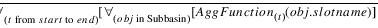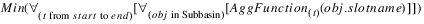 Description | Aggregates several objects’ values, each of which is the result of aggregating a slot’s values over time. | |