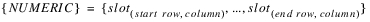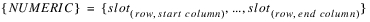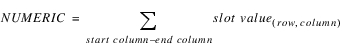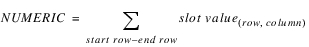 Description | Sum of the values of a table slot row between two columns. | |