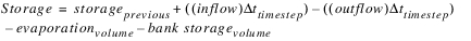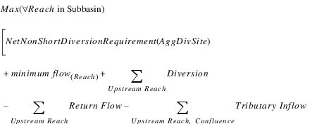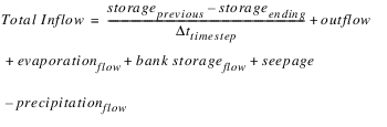Evaluation | This function takes the target pool elevation value and converts it to a storage. This is the storage value desired at the target date. The difference between the target storage and the previous storage is the change in storage over the target range. Since the total inflow volume over the target range is given as an argument, the total outflow volume can be computed. Side flows are automatically included in the mass balance computation and thus should not be included in the inflow value provided in Argument 5. These include Hydrologic Inflow Net, Diversion, Return Flow, Canal Flow, Flow FROM Pumped Storage, and Flow TO Pumped Storage. If any of the side flow slots contain NaN on one of the target period timesteps, the value will be assumed to be zero on that timestep. Other sources and sinks, such as Evaporation, Precipitation, Bank Storage and Seepage are NOT included in the mass balance computation. The total outflow volume is then converted to a flow rate and divided by the number of timesteps in the target range. The result is a single timestep outflow value. This value needs to be set on the outflow slot for every timestep in the target range in order to meet the target pool elevation. | |
