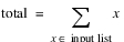 1 | LIST {NUMERIC} | the values to be summed |
