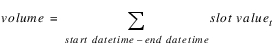 Evaluation | The function loops through all of the slot values between the start and end datetime arguments. Each value is added to the previous result. | |