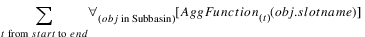 Description | Sum a slot’s values over a time range, for each object in a subbasin. | |