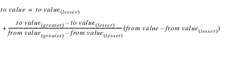 Evaluation | The value argument is looked up in the “from” column of the given table slot to determine the corresponding value in the “to” column. If the exact value is not in the table, the lookup performs a linear interpolation between the two nearest bounding values in the “from” column and their corresponding values in the “to” column. Note: A key assumption of this function is that the “from” column has a value in every row and that those values are sorted in ascending order. | |