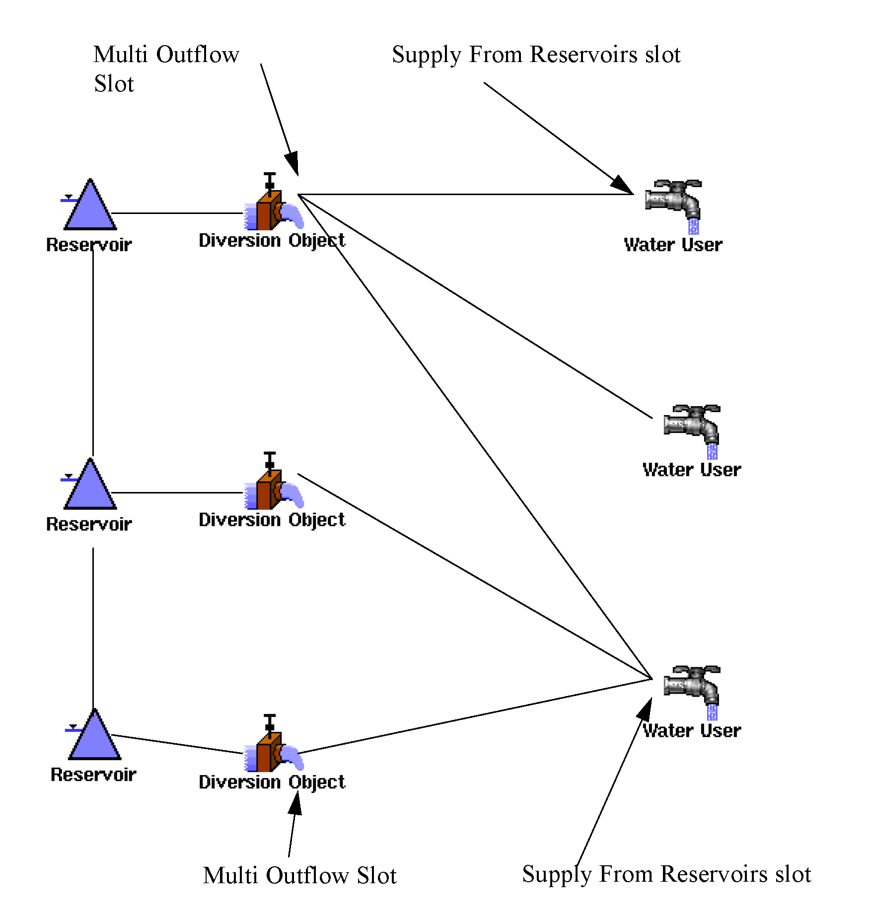 Evaluation | A list of slots is generated by searching all of the objects in the Subbasin argument for slots which match the slot name argument. If the time conversion option argument is TRUE, and the values to be aggregated are of the FLOW unit type, the values are multiplied by their corresponding timestep length to convert them to values of the unit type VOLUME. Next, all of the objects’ slot values are aggregated according to the aggregation function argument for each timestep in the time range of the datetime arguments. During each of these slot aggregations, any values which do not satisfy the aggregation filter argument are ignored. Finally, the timeseries of object aggregated slot values are averaged. | |