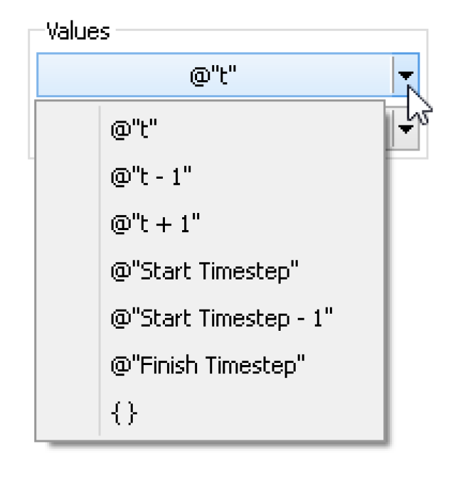 Slot [ ] | NUMERIC | <expr> [ ] Series slot value at the current timestep or scalar slot value. The unspecified <expr> must be completed by an expression which evaluates to a specific slot on an object. |