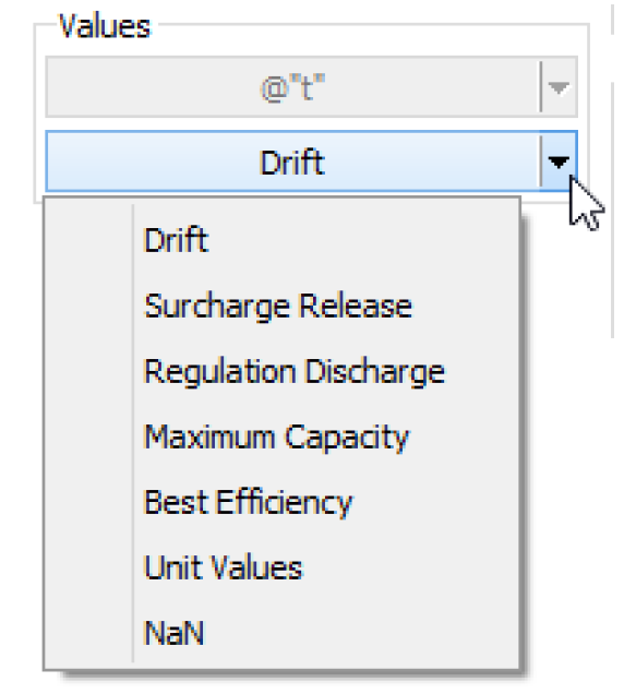 Unit Values | Used to set the UNIT_VALUES (U) flag on Turbine Release or Energy slots on power reservoirs. This flag is used (with the Unit Power Table method) to specify that either Unit Turbine Release or Unit Energy will be specified. |