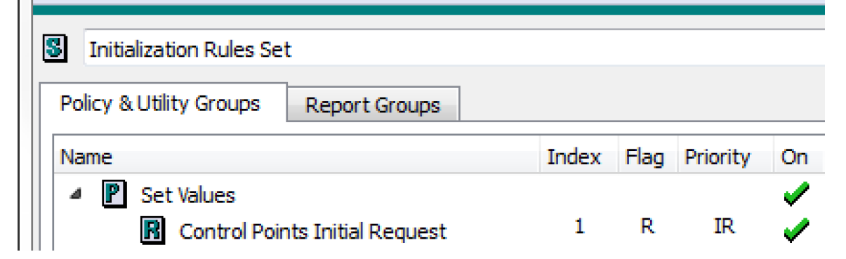 • Flags: Initialization Rules allow you to specify the flag that is set. For initialization Rulesets, a Flags column is shown.