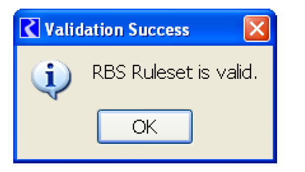 If the block or set is valid, a confirmation window appears. Select OK and continue. Otherwise, a validation error dialog appears and the diagnostic window posts the location of the invalid expression. You then must fix the block.