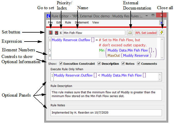 Figure 2.18 Annotated Screenshot of a RPL Editor
