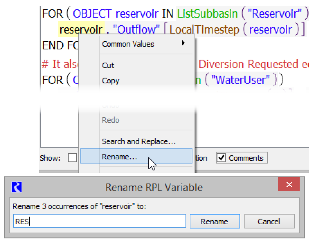 Tip: Copying and pasting of RPL expressions is supported across opened RiverWare sessions. Copy an expression from one RPL set and paste it in another opened RPL set even in a separate RiverWare session.