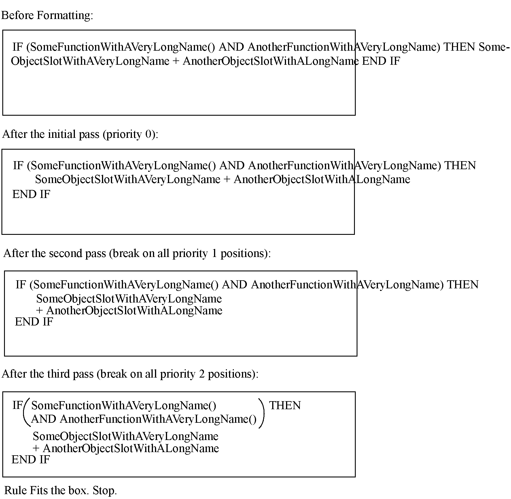 Notice that with this naive algorithm, had the object slot names been small, they would have still been broken at the “+” symbol, since, the “+” had a higher priority (1) than the AND and the block did not yet fit the box.