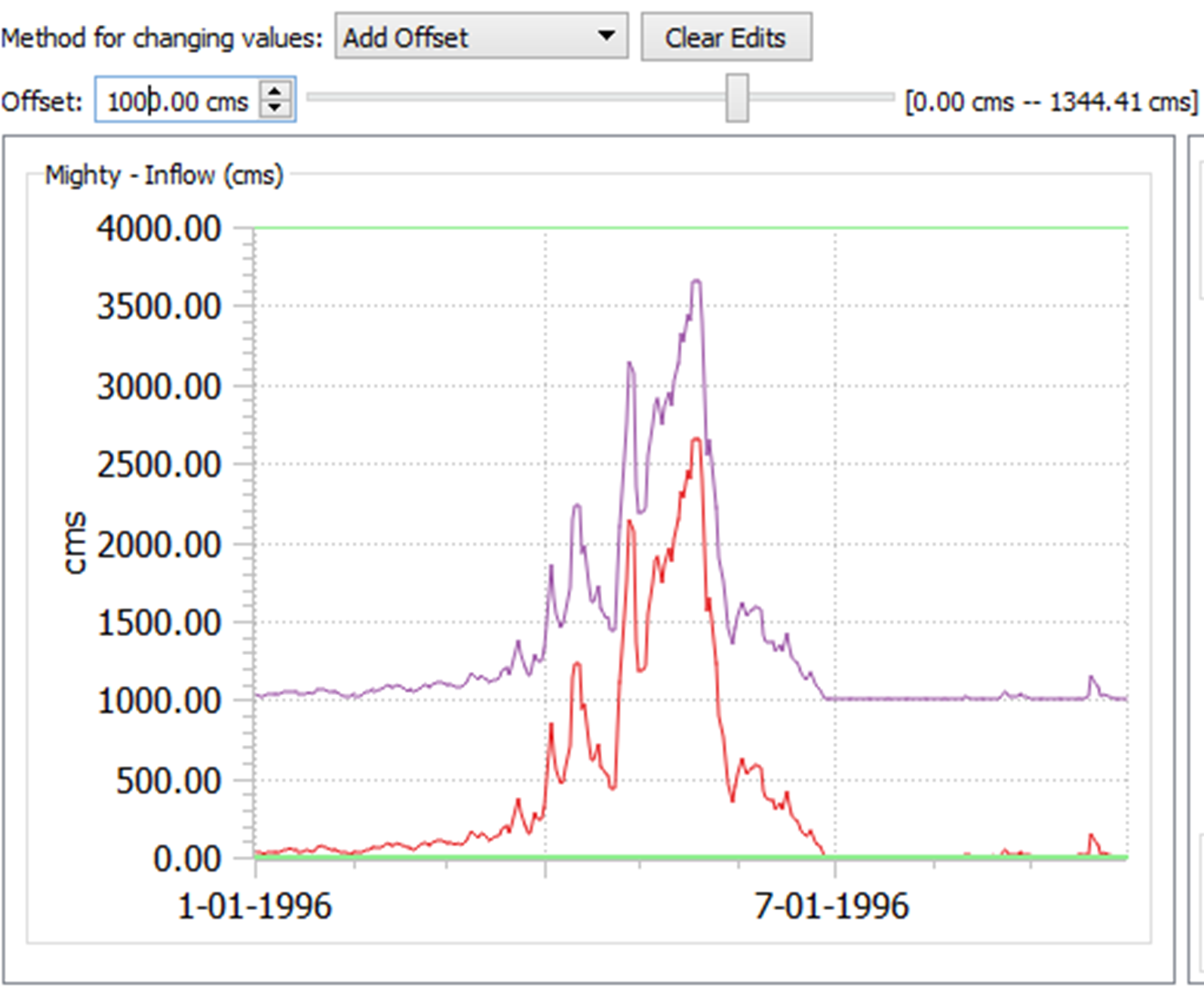 Note:  The limits of the slider and the edit box are found by taking the minimum and maximum values for all data sets. Therefore, the maximum offset will be such that one data point reaches the maximum value at some point in the time series. Therefore, other data sets may not reach their maximum or minimum values.