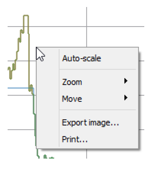 • Export Image. Create an image file representing the plot. The resulting dialog allows you select the export image file extension, size, resolution, and destination. The available file type extensions are: *.bmp, *.jpeg, *.pbm, *.pgm, *.png, *.ppm, *.xbm or *.xpm.