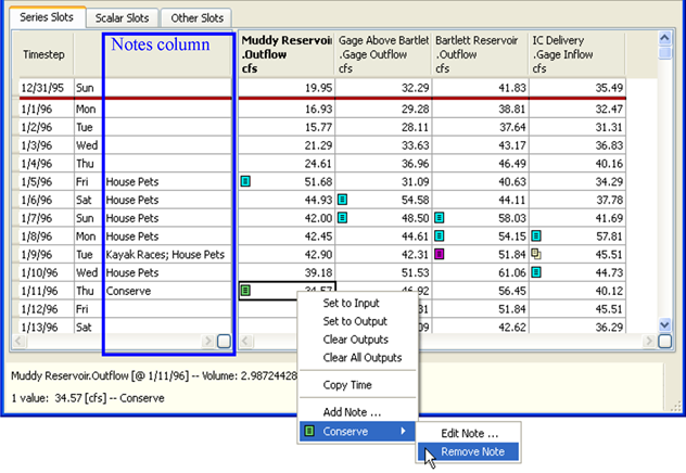 The SCT displays timestep annotations on the Series Slots tab.See Notes on Series Slots in User Interface for more information on Series Slot Notes.