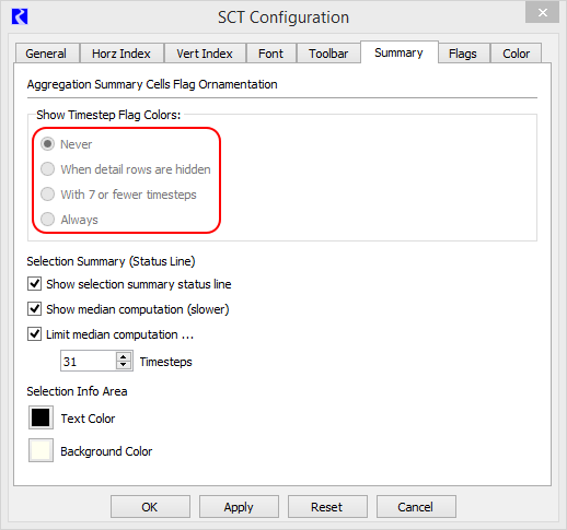 The following options in the “Show Timestep Flag Colors” area are set to the specified state and made not available.