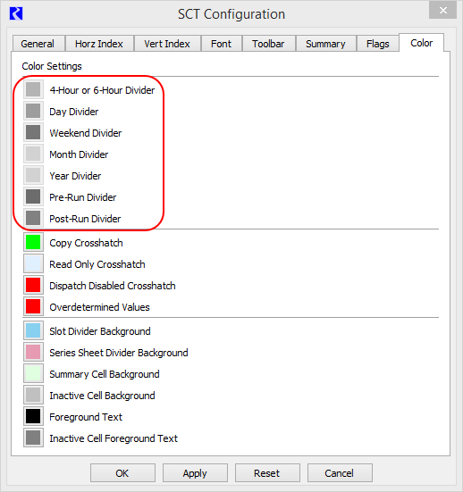 System Control Table (SCT) : SCT Reference : Integer-indexed SCTs : SCT Configuration dialog box, Color tab