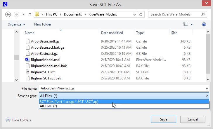 Note:  The SCT file should be saved with a .sct or .sct.gz extension so RiverWare can recognize it as an SCT.