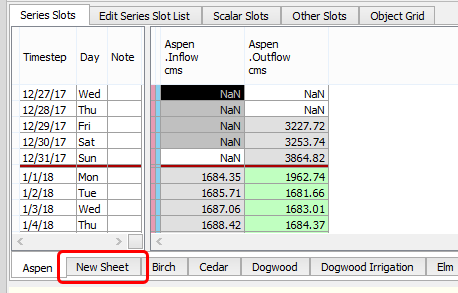 The Series Slot tab opens, and new sheet appears as a tab at the bottom of the page.
