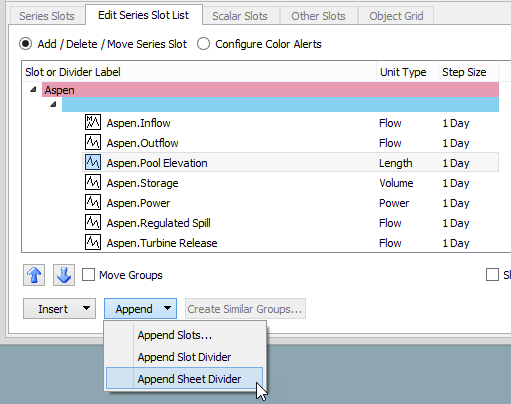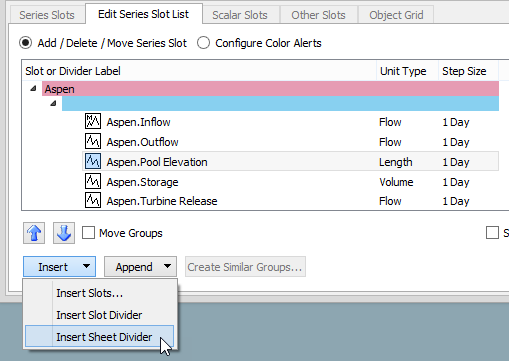 – Select Append, then Append Sheet Divider to insert the divider at the end of the slot list.