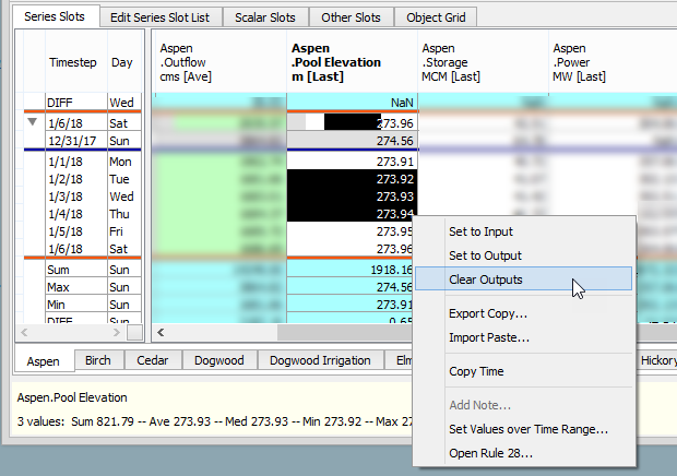 Use these procedures to clear editable slot values. The cell values are set to NaN and the cell value flag is set to Output (O). Generally, editable slot values are ones that would be computed during a model run, including values with the following flags: