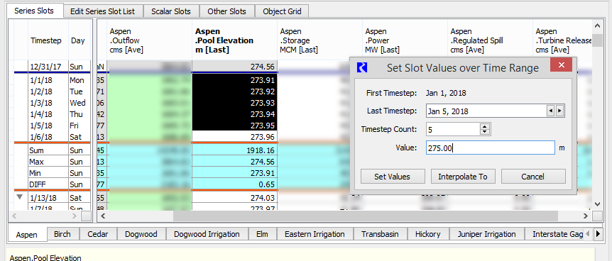 The Set Slot Values over Time Range dialog box appears.