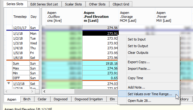3. On the shortcut menu, select Set Values over Time Range.