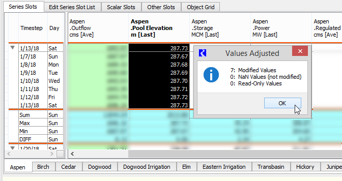 Note:  Since slots can appear in an SCT more than once, this update is careful to adjust each selected slot/timestep value only once. Optionally, you can view a summary of the slots updated.