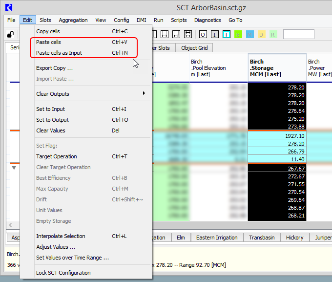 System Control Table (SCT) : Using the SCT : Copying and Pasting Slot Values : Copy and paste multiple values to the same timesteps