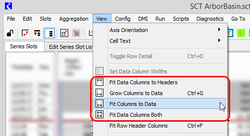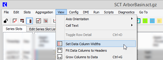 3. In the SCT menu, select View, then Set Data Column Widths. Alternatively, select the  button on the toolbar.