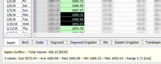 • Sum, average, median, min, max, and range of the selected values