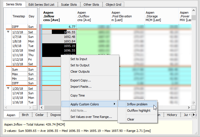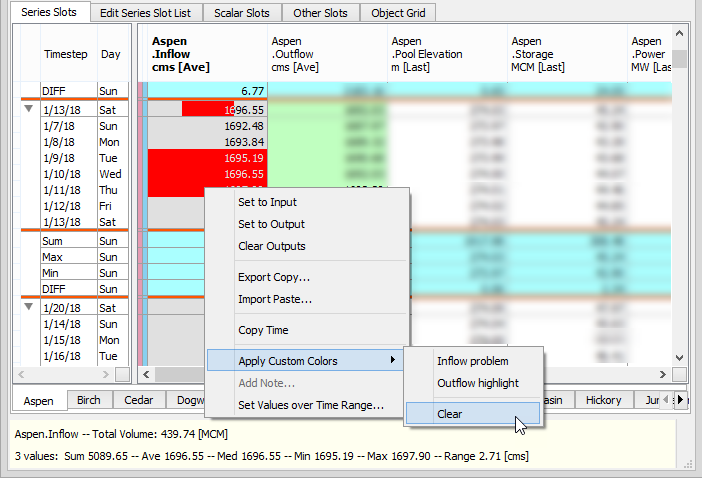 Note:  The cell / custom color associations are stored in the SCT, not in the RiverWare model. So the SCT must be saved to retain these color associations.
