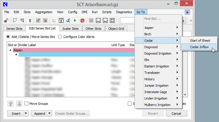 2. In the SCT menu, select Go To, then the sheet name, then one of the following options, as applicable: