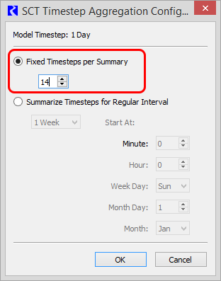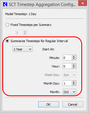 The SCT Timestep Aggregation Configuration dialog opens.