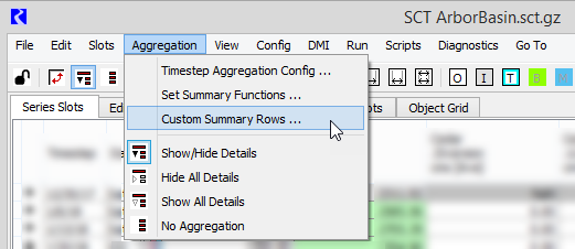 2. On the SCT menu, select Aggregation, then Custom Summary Rows.