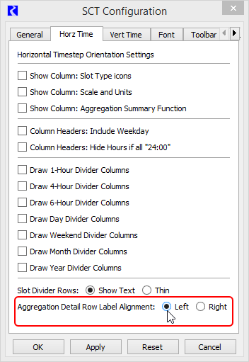 Use this procedure to configure the horizontal timestep orientation on the Series Slots tab. See Horz Time tab for details on these settings.