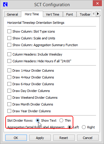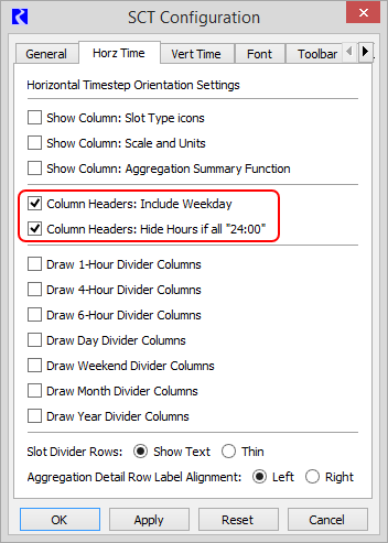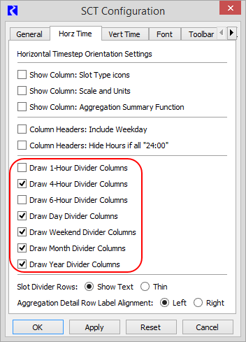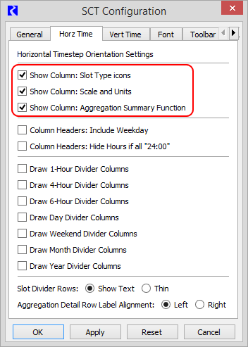 System Control Table (SCT) : Using the SCT : Configuring SCT Settings : Configure horizontal timestep display